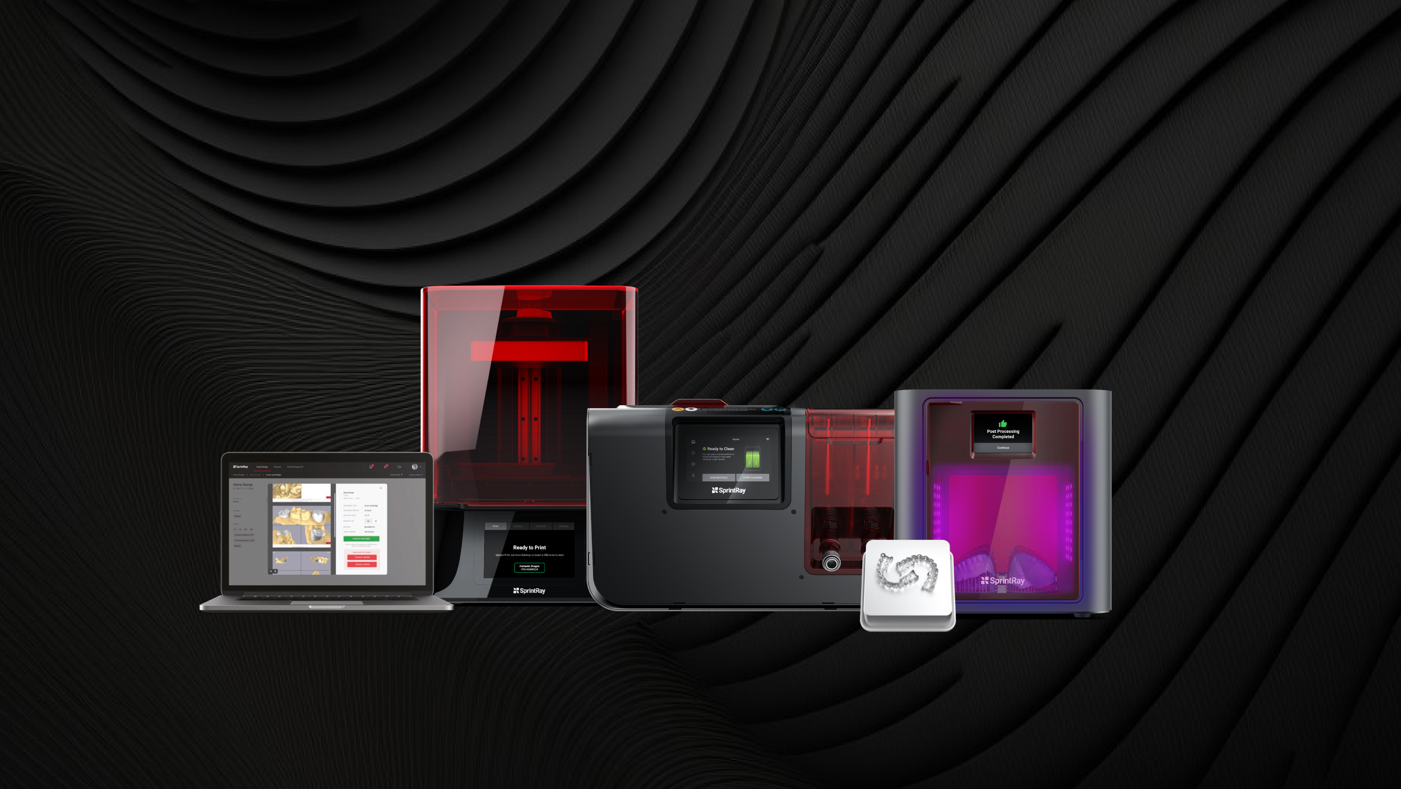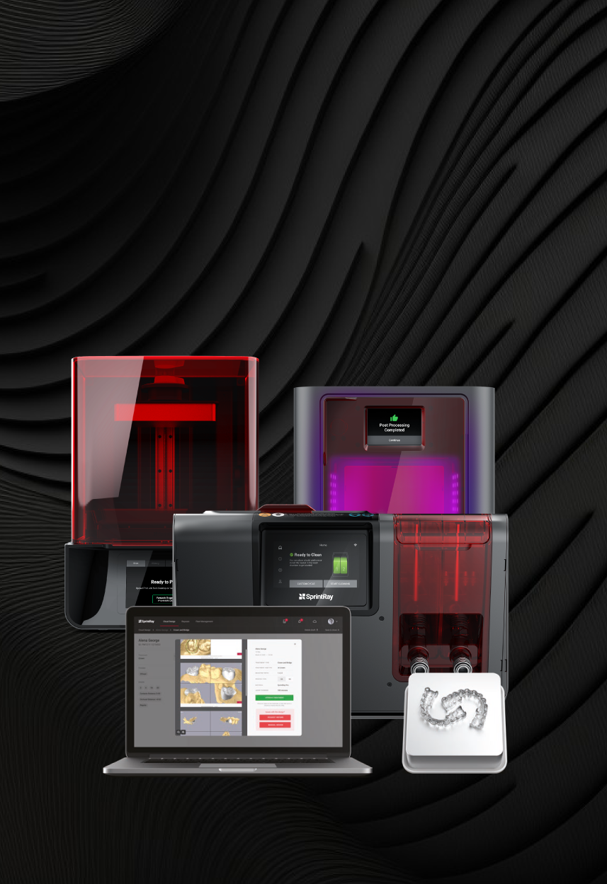 Os produtos SprintRay são desenvolvidos para funcionarem juntos, criando oportunidades de colaboração, inovação e excelentes resultados clínicos. Do design à impressão e ao pós-processamento, um ecossistema completo para potencializar a eficiência da sua clínica.